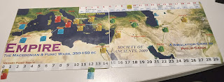 The Macedonians have seven provinces (do not forget lonely Bactria), including double-scoring AEGYPTUS, giving them eight points.